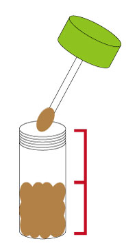 | 保存液なし | 3gの場合: 糞便から複数回採取し、容器の1/2程度 | ![]() |